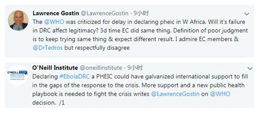"Declaring #EbolaDRC a PHEIC could have galvanized international support to fill in the gaps of the response to the crisis," tweeted O'Neill Institute for National and Global Health Law, which Gostin directs.
