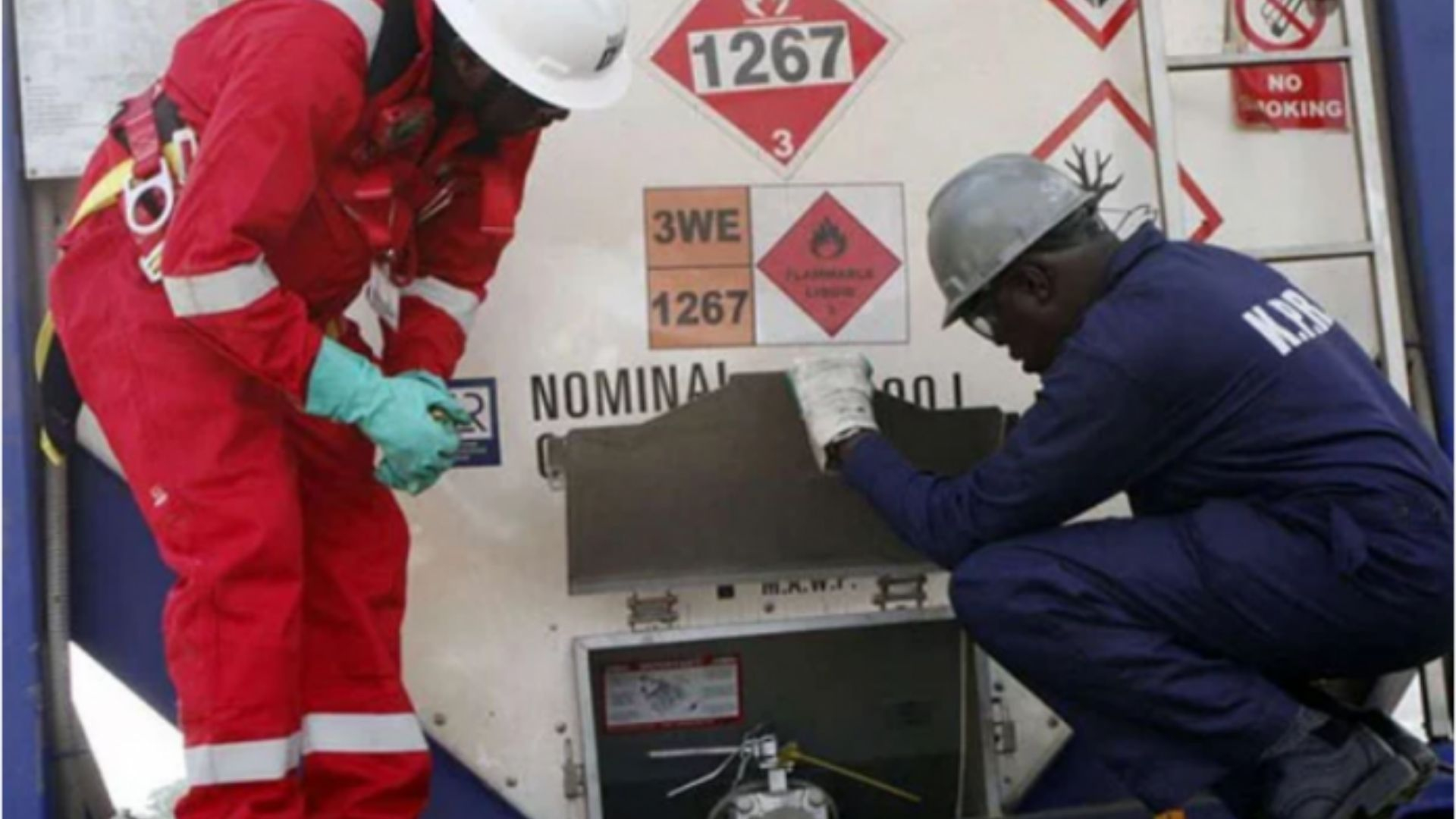 Tullow Oil workers offload crude from Lokichar. FILE PHOTO | NATION MEDIA GROUP
