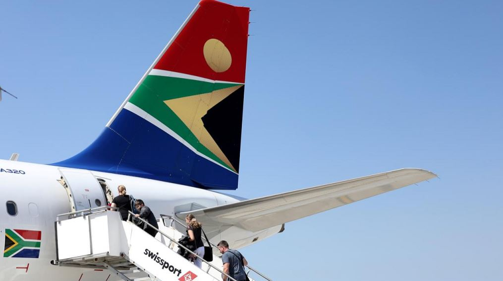 FILE PHOTO: Passengers board a South African Airways plane at the Port Elizabeth International Airport in the Eastern Cape province, South Africa, September 30, 2018. /Reuters