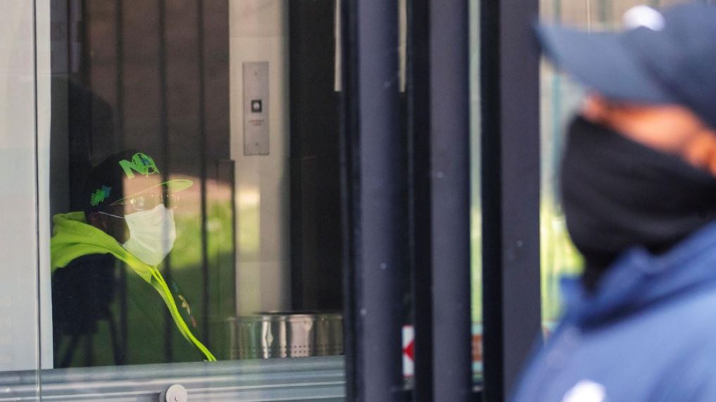 FILE PHOTO - A man looks outside of a window at a nursing home as family member wait to speak to a patient of the home during an ongoing outbreak of COVID-19 in the Brooklyn borough of New York, U.S., April 16, 2020. /Reuters