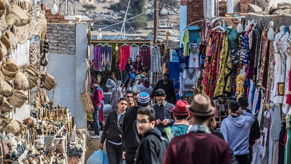 Egyptian tourists ride a camel along a bazaar street in the Nubian village of Gharb Suhail, on the west bank of the Nile river off Egypt’s southern city of Aswan some 920 kilometres south of the capital. /Getty Images.