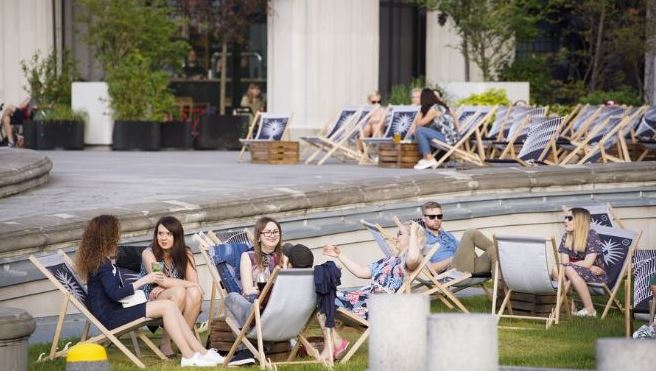 People enjoy the warm weather at an outdoor bar in Warsaw, Poland on June 11, 2020. (Photo by Jaap Arriens/Xinhua)