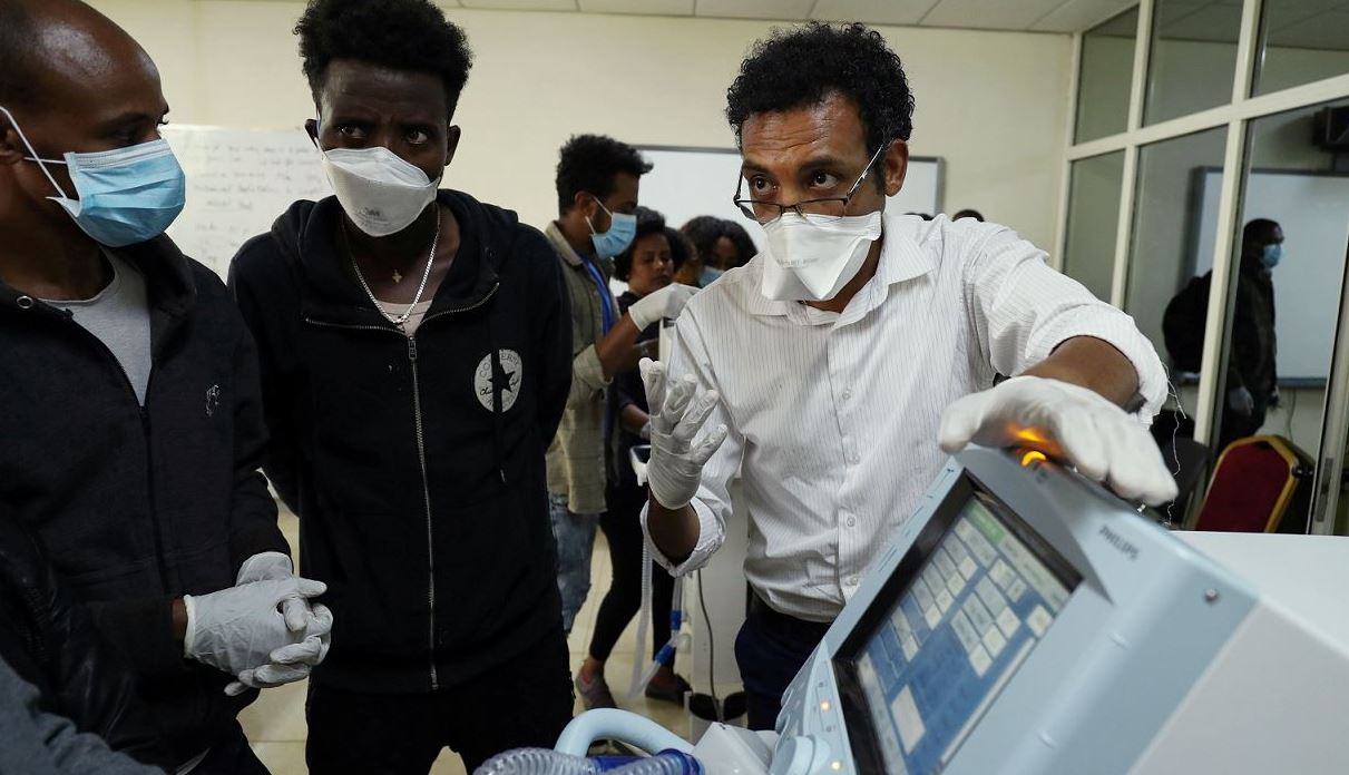Habtamu Kehali, respiratory therapist gives a training on the mechanical ventilator for health professionals as part of preparations to treat COVID-19 patients at St. Peter's hospital on the outskirts of Addis Ababa, Ethiopia May 2, 2020. Picture taken May 2, 2020. REUTERS/Tiksa Negeri