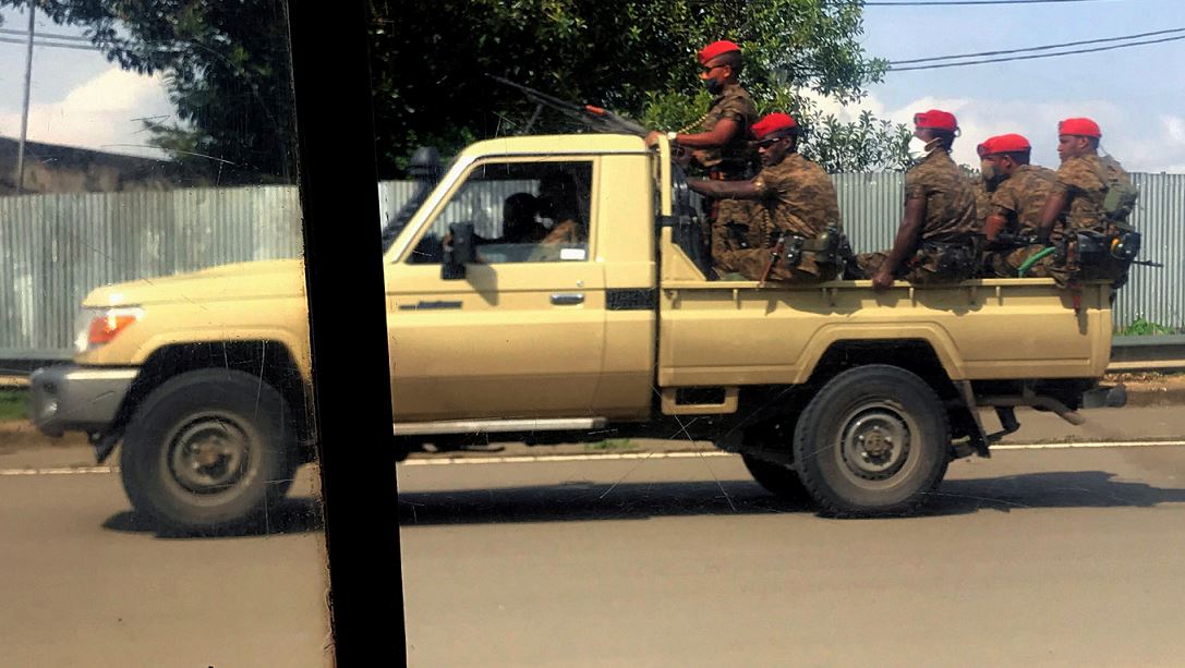 FILE PHOTO: Ethiopian military ride on their pick-up truck as they patrol the streets following protests in Addis Ababa, Ethiopia July 2, 2020. REUTERS/Tiksa Negeri/File Photo