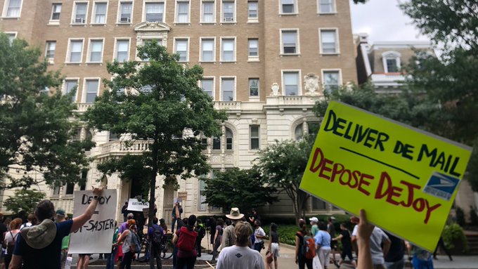 "DeJoy has fired or reassigned much of the existing USPS leadership and ordered the removal of mail sorting machines that are fundamental to the functioning of the postal service," activist group Shut Down DC, which organized the protest, said in a statement.