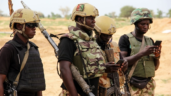 FILE PHOTO: Nigerian Army soldiers stand at a base. (Photo by AUDU MARTE / AFP)