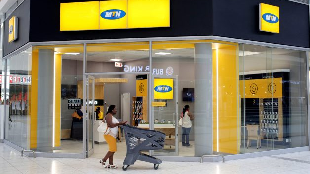 FILE PHOTO: A shopper walks past an MTN shop at a mall in Johannesburg, South Africa. REUTERS/Siphiwe Sibeko/File Photo