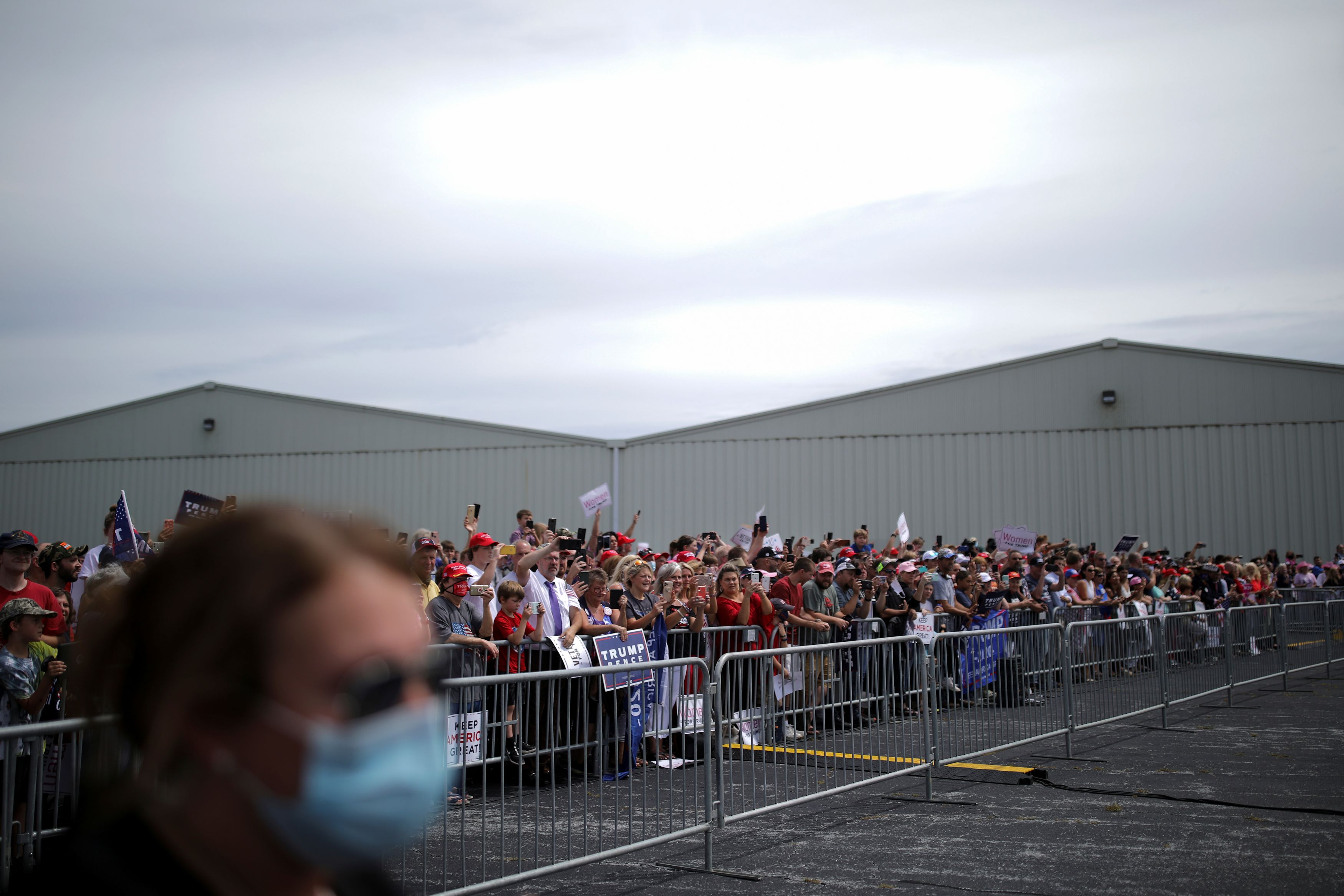 Supporters wait for the arrival of U.S. President Donald Trump at Asheville Regional Airport in Asheville, North Carolina, U.S., August 24, 2020. /Reuters