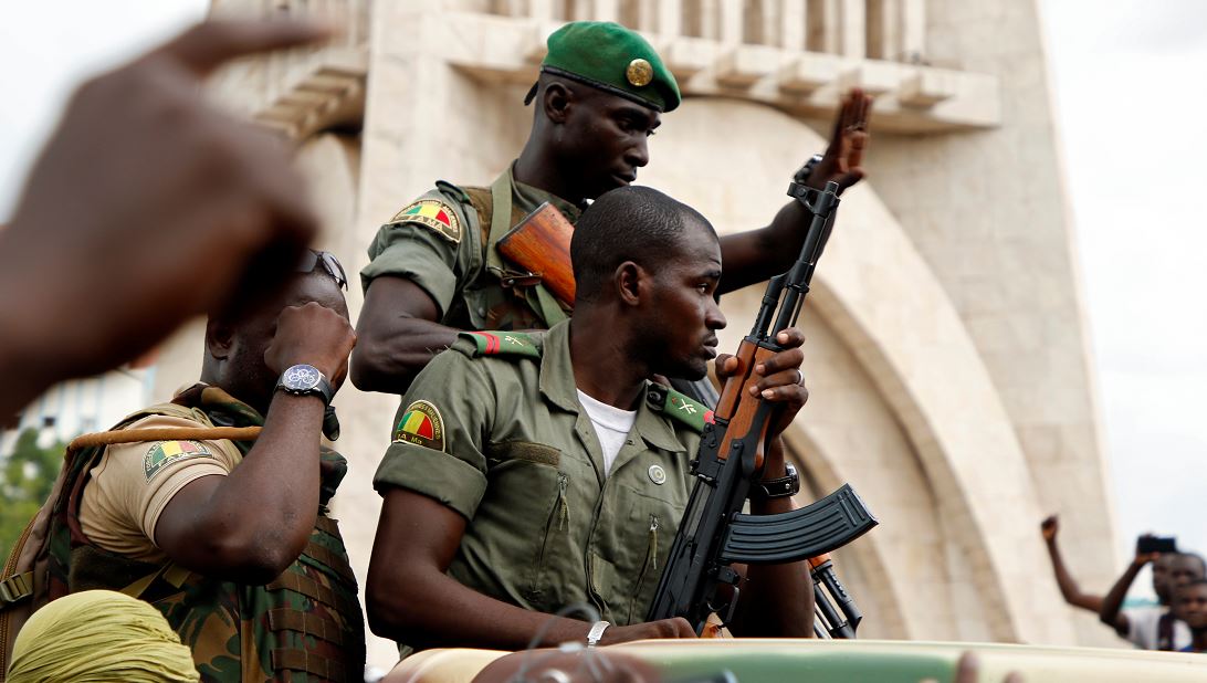 Malian army soldiers are seen at the Independence Square after a mutiny, in Bamako, Mali August 18, 2020. REUTERS/Moussa Kalapo