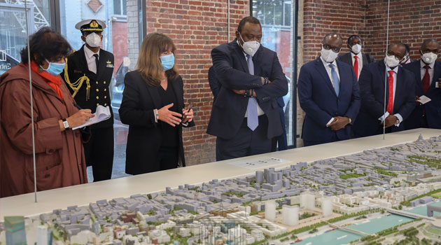 President Kenyatta was taken on a guided tour of Quartier Rive Gauche urban renewal and Station F innovation hub projects in downtown Paris. /Presidential Press Communication Unit-PSCU
