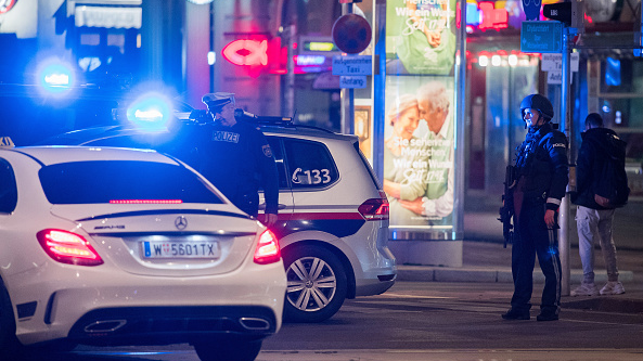 FILE PHOTO: Police block a street in the city center following shots fired nearby in Vienna, Austria. /Getty Images
