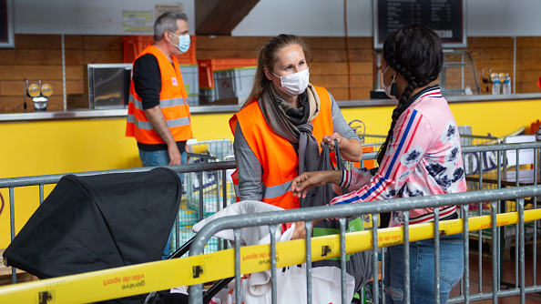 FILE PHOTO: Volunteers help at a food bank in an ice rink during the coronavirus crisis in Geneva, Switzerland. /Getty Images