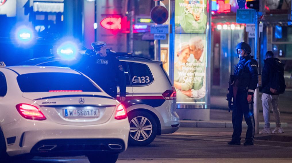 FILE PHOTO: Police block a street in the city center following shots fired nearby in Vienna, Austria. /Getty Images