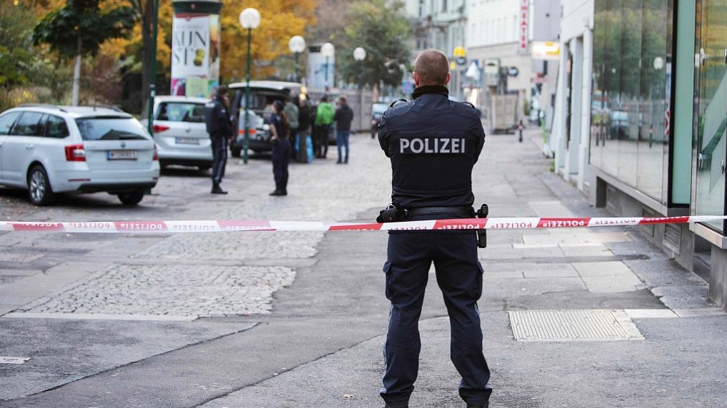 An Austrian police officer works at the Plaza DE Mozin in Vienna, Austria, November 3, 2020. /VCG