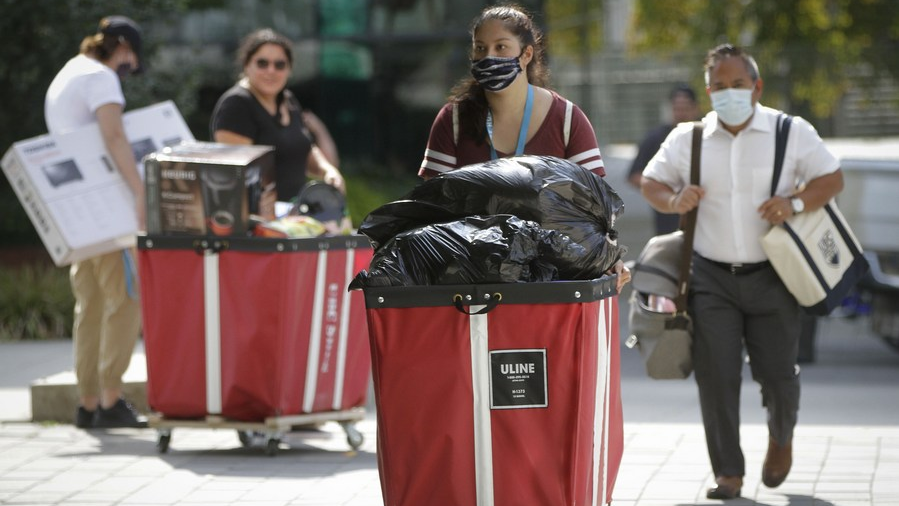 Students and family members move their belongings to their residences around the campus of University of British Columbia in Vancouver, British Columbia, Canada, on Sept. 5, 2020. /Xinhua