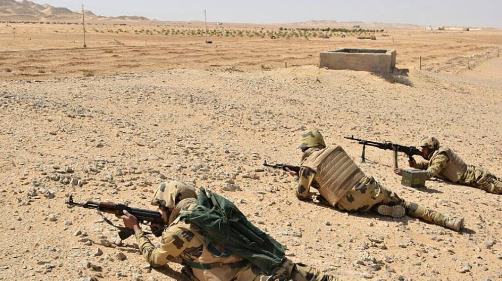 FILE PHOTO: Egyptian Army soldiers are seen in the troubled northern part of the Sinai peninsula during a launch of a major assault against militants, in Al Arish, Egypt in March 2018. /VCG Photo