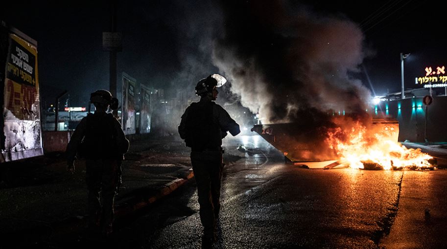 Israeli police patrol during clashes between Arabs, police and Jews, in the mixed town of Lod, central Israel on May 12, 2021. /AP
