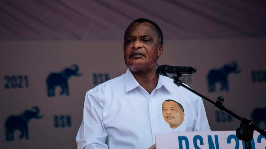Congo President Denis Sassou-Nguesso delivers a speech during his last election campaign rally in Brazzaville on March 19, 2021. /AFP
