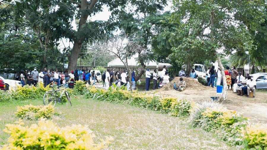 People line up to receive the COVID-19 vaccines at a clinic in Blantyre, Malawi, on March. 26, 2021. /Xinhua