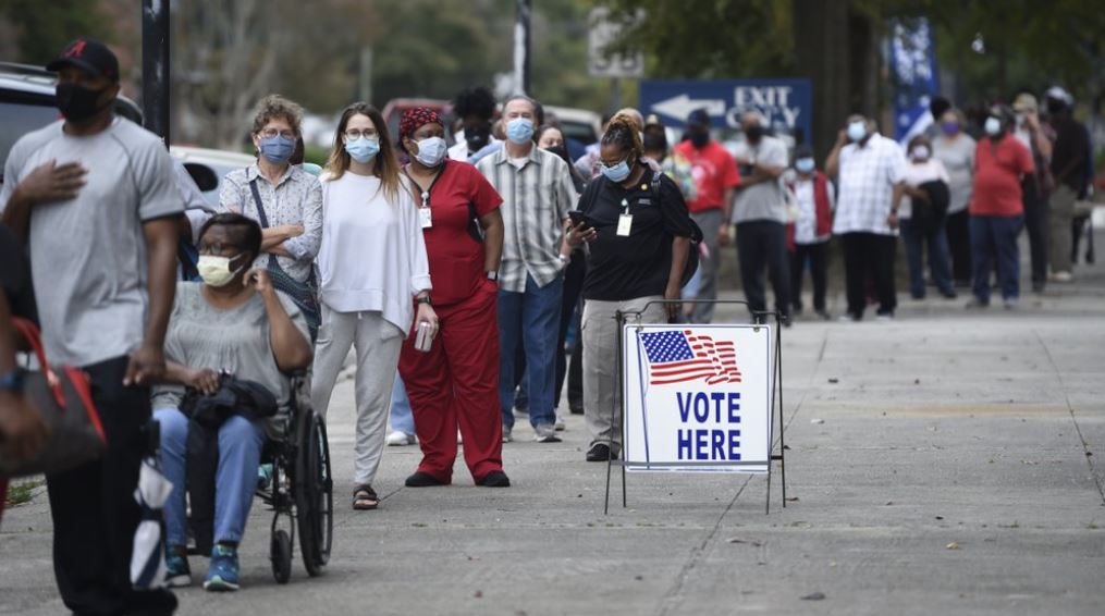 People wait in line for early voting at the Bell Auditorium in Augusta, Georgia, U.S., October, 12, 2020. /AP