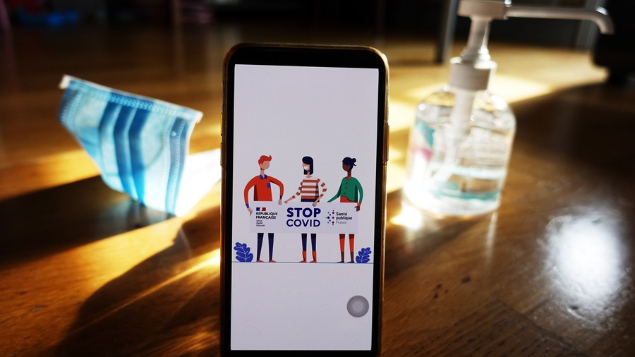 Photo taken on June 3, 2020 shows the contact-tracing smartphone app "StopCOVID" on a mobile phone in Paris, France. /Xinhua