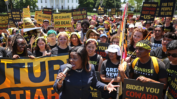 Rep. Cori Bush (D-MO) rallies hundreds of young climate activists in Lafayette Square on the north side of the White House, demand that U.S. President Joe Biden work to make the Green New Deal into law on June 28, 2021 in Washington, DC. /Getty Images