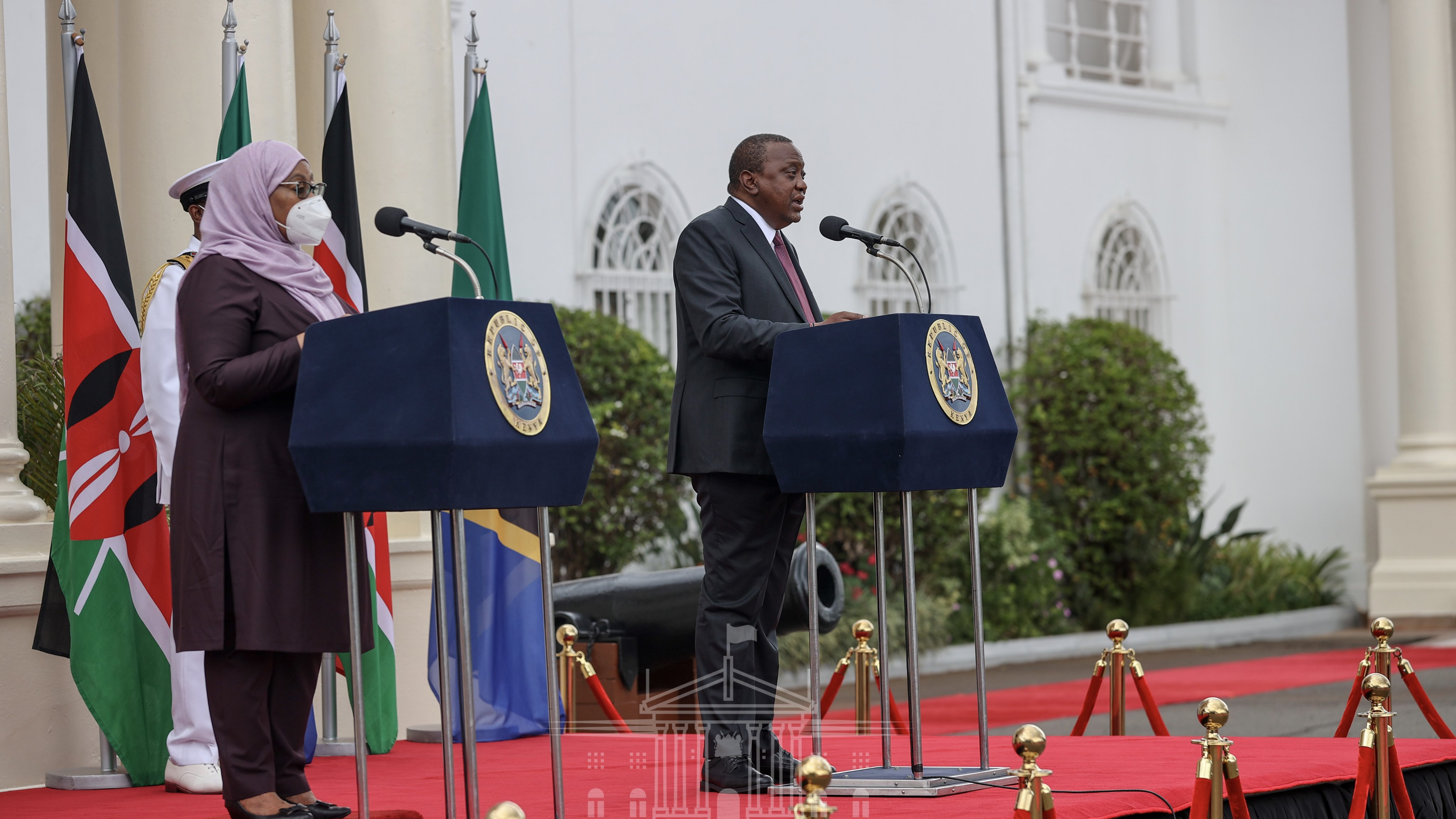 FILE PIC: Tanzania's President Samia Suluhu and Kenya's President Uhuru Kenyatta(R). /Presidential Service Communication Unit-Kenya.