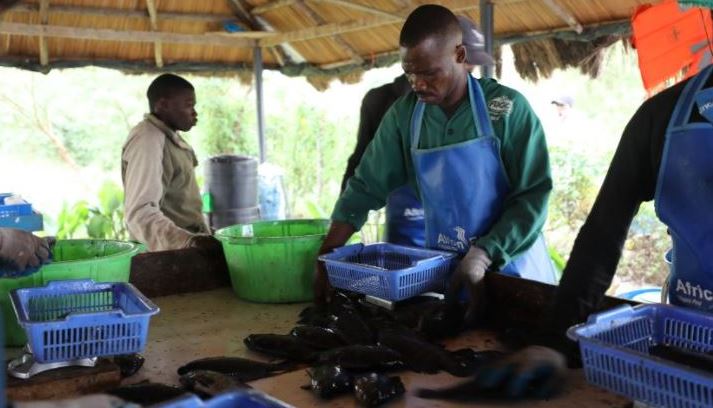 FILE PHOTO: Workers at African Blue Fish Farm sort fish harvests before packing them for transportation, Siaya Kenya. /CGTN