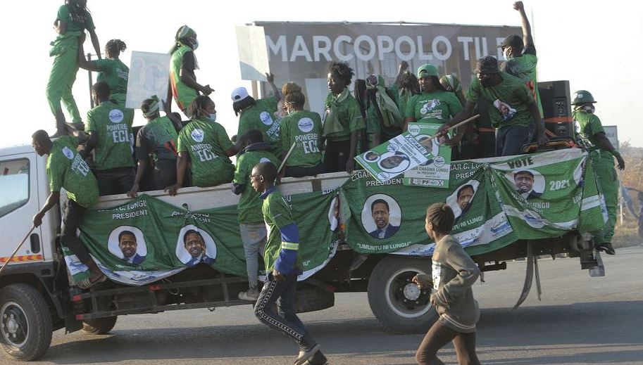 Supporters of Zambian President Edgar Lungu campaign on the streets in Lusaka, Zambia, Tuesday Aug, 10, 2021. (Tsvangirayi Mukwazhi via CFP)