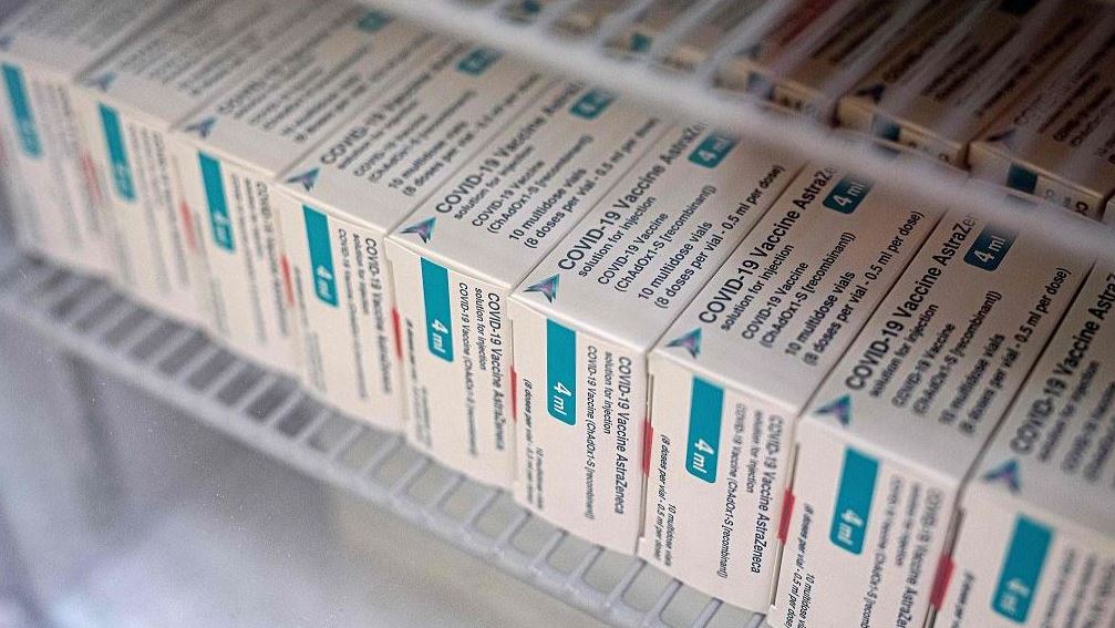 File photo taken on April 14, 2021 shows packets of the AstraZeneca/Oxford COVID-19 vaccine. (Photo by OLI SCARFF / AFP via CFP)