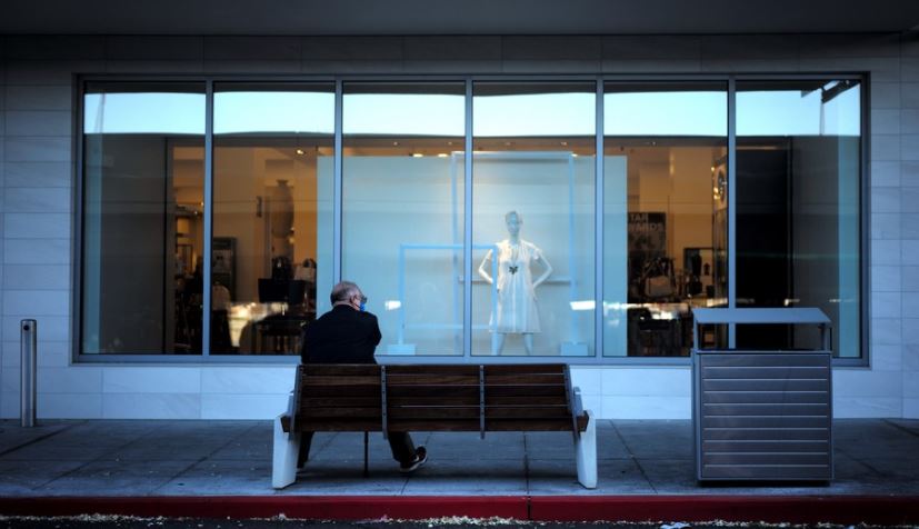 A man wearing a mask is seen outside a shopping mall in San Mateo, California, the United States, May 19, 2021. /Xinhua