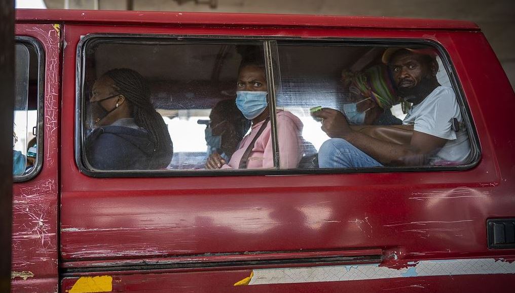Passengers, some wearing masks, wait for their taxi to leave the Baragwanath taxi rank in Soweto, South Africa, Thursday December 2, 2021. (Photo by Jerome Delay via CFP)