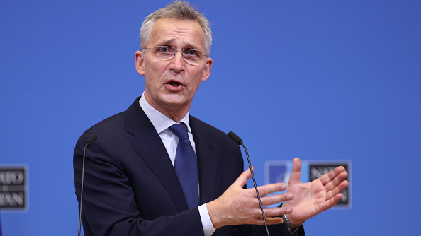 NATO Secretary General Jens Stoltenberg speaks at a press conference in Brussels, Belgium on February 7, 2022. (Photo by Dursun Aydemir/Anadolu Agency via Getty Images)