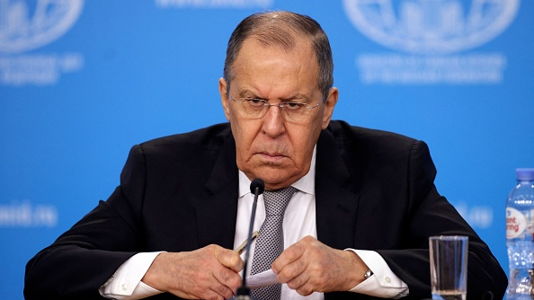 Russian Foreign Minister Sergei Lavrov looks on as he gives an annual press conference on Russian diplomacy in 2021, in Moscow on January 14, 2022. (Photo by DIMITAR DILKOFF/AFP via Getty Images