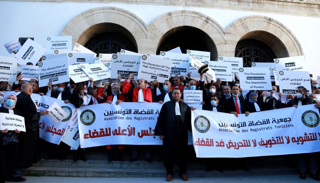 More than 200 judges and lawyers in Tunisia protested outside the main court on Thursday against President Kais Saied announcement that he would scrap a key judicial watchdog.