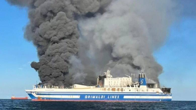 The Italian-flagged Euroferry Olympia on fire. /AP