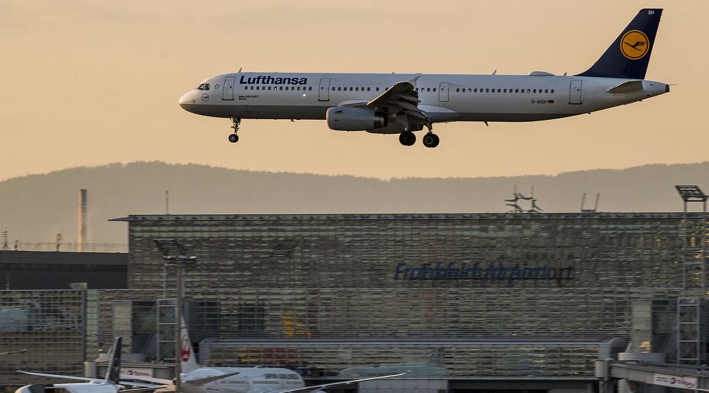 FILE PHOTO: A Lufthansa airplane lands at Frankfurt Airport on March 16, 2020 in Frankfurt am Main, Germany. A planned strike on Tuesday will hit Frankfurt Airport, which handled around 2.1 million passengers last month. (Photo by Thomas Lohnes /Getty Images)
