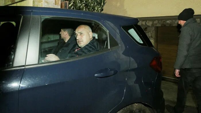Boyko Borisov, Bulgaria's former prime minister, is seen leaving his house in Sofia in a car on Thursday. /AFP