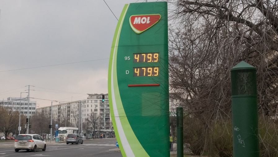 Gas prices are seen at a fuel station in Budapest, Hungary, on March 4, 2022. (Photo by Attila Volgyi/Xinhua)