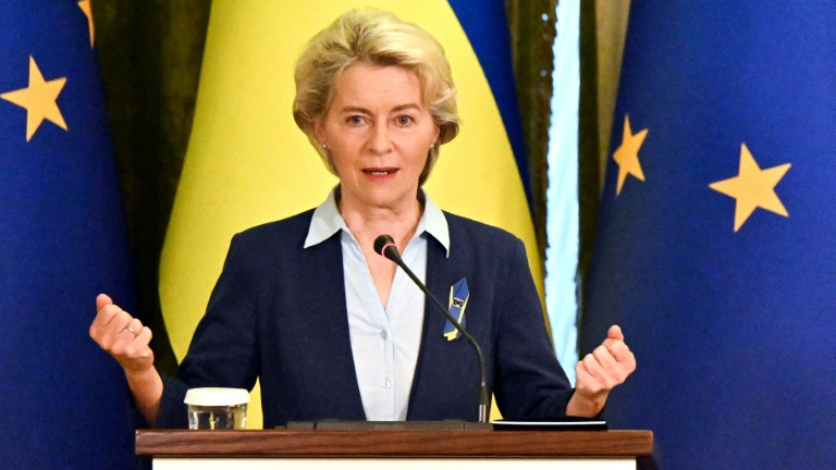 Ukraine's bid to become a candidate to join the EU will get a clear signal next week, the bloc's chief Ursula von der Leyen said Saturday on a surprise visit to Kyiv.