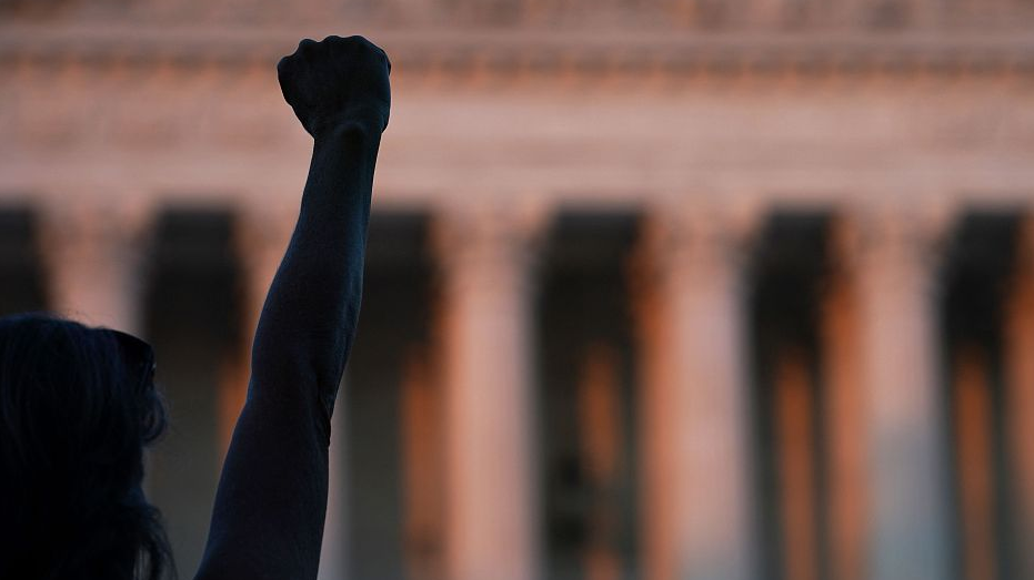 An abortion rights activist holds up her fist during protests outside of the U.S. Supreme Court after striking down the right to abortion in Washington, DC, on June 24, 2022. /CFP