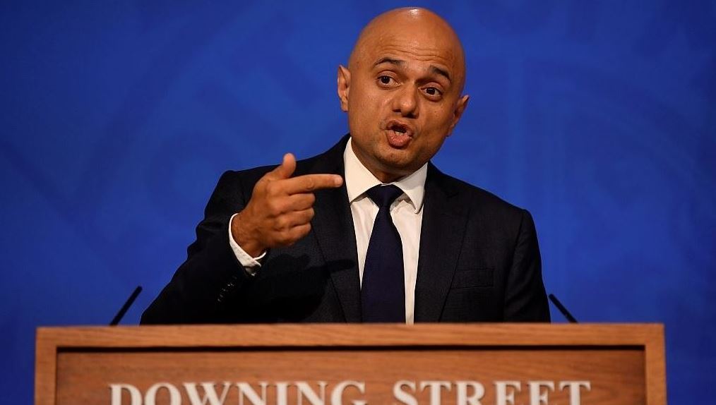 FILE PHOTO: U.K. Health Secretary Sajid Javid speaks during a press conference at Downing Street on October 20, 2021 in London. (Photo by Toby Melville - WPA Pool/Getty Images)