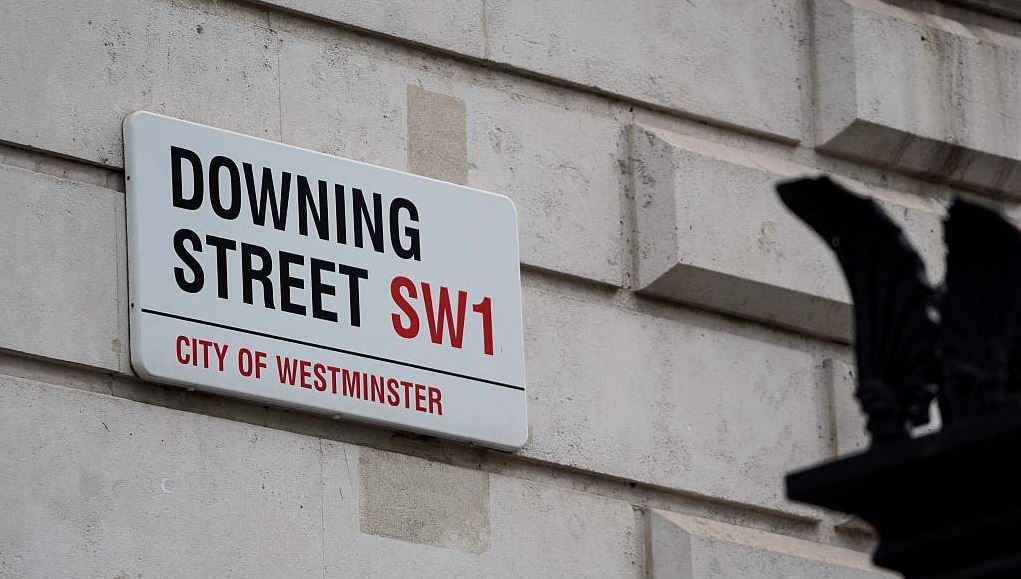 A photograph taken on June 6, 2022 shows the street sign for Downing Street, in central London. Eight candidates have made it on the ballot for the Conservative Party leadership contest to replace Boris Jonhnson(Photo by Niklas HALLE'N via CFP)