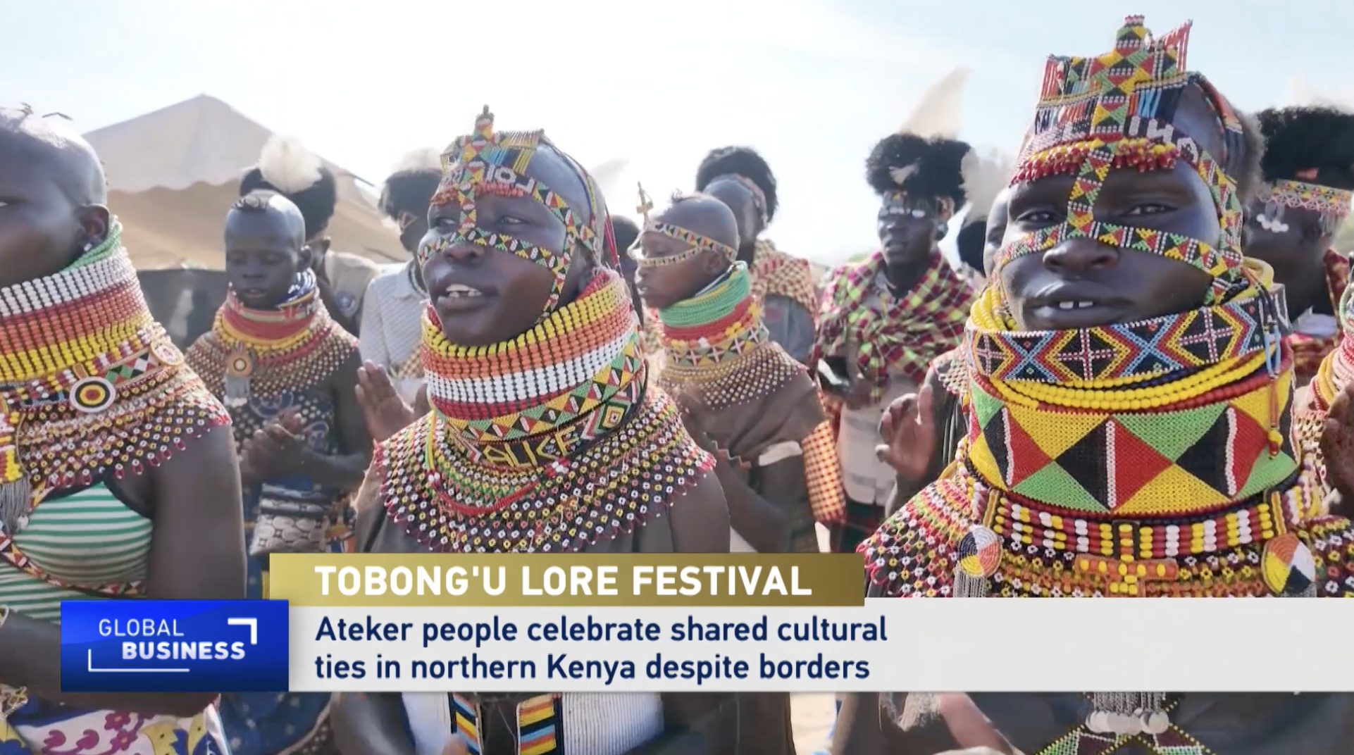CGTN Africa's reporter Marion Gachuhi adorned in Turkana traditional attire, during the 2025 Tobong’u Lore Cultural Festival in Lodwar, Turkana, northern Kenya.
