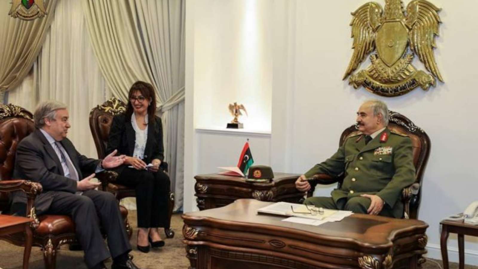 It came as U.N. Secretary-General Antonio Guterres departed after meeting Haftar to try to avert civil war.